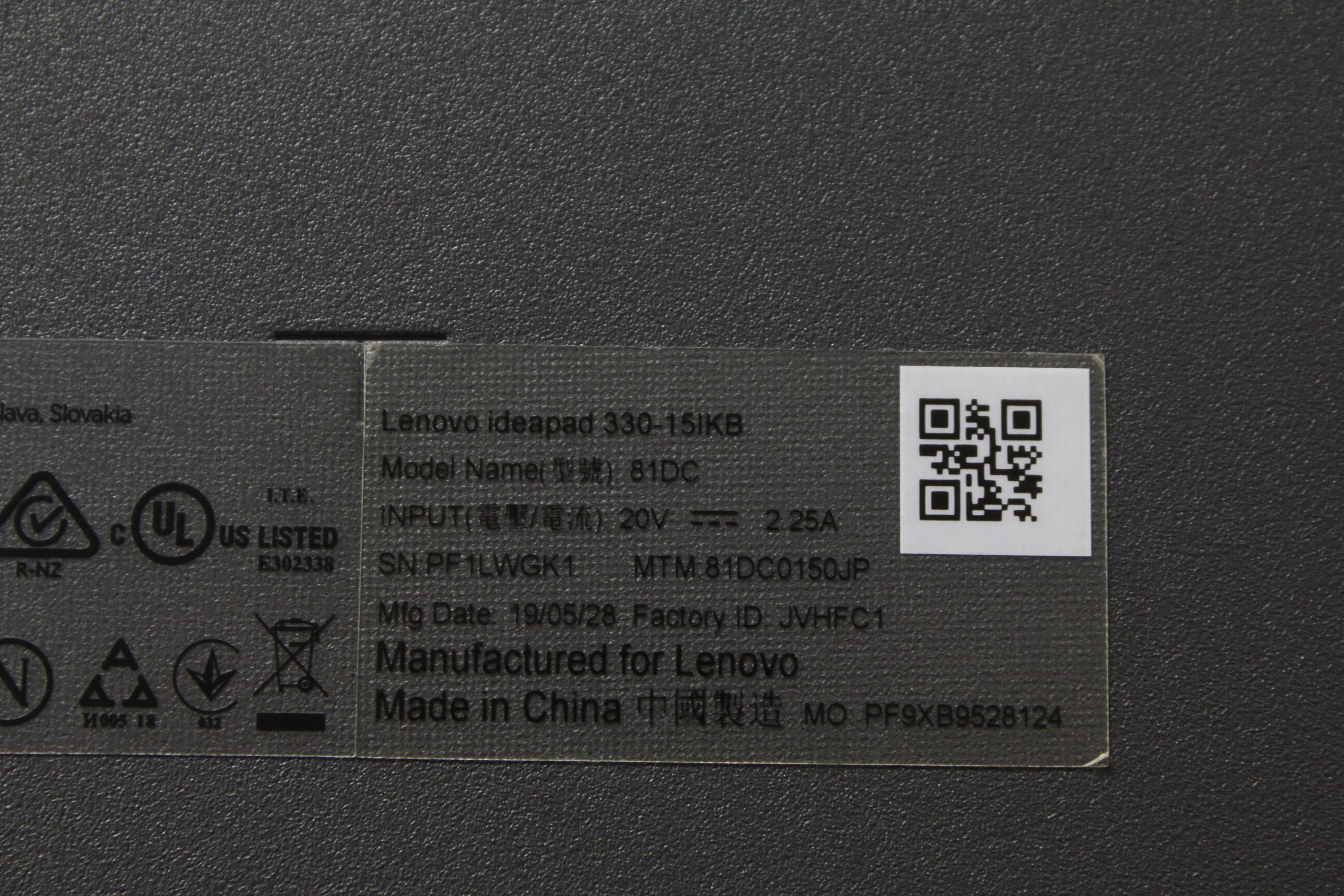【中古ノートPC】Lenovo〈Ideapad 330-15IKB〉Intel Core i3/SSD256GB/メモリ8GB ⑥