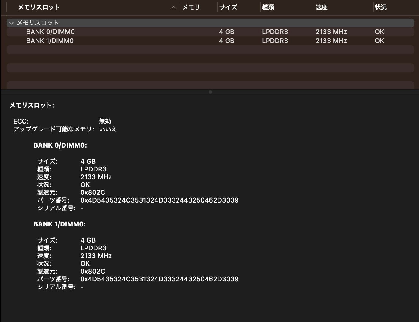 ・メモリ:8GB(4GB × 2)