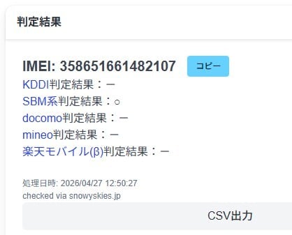 Softbank『○』判定。SIMフリー端末です。