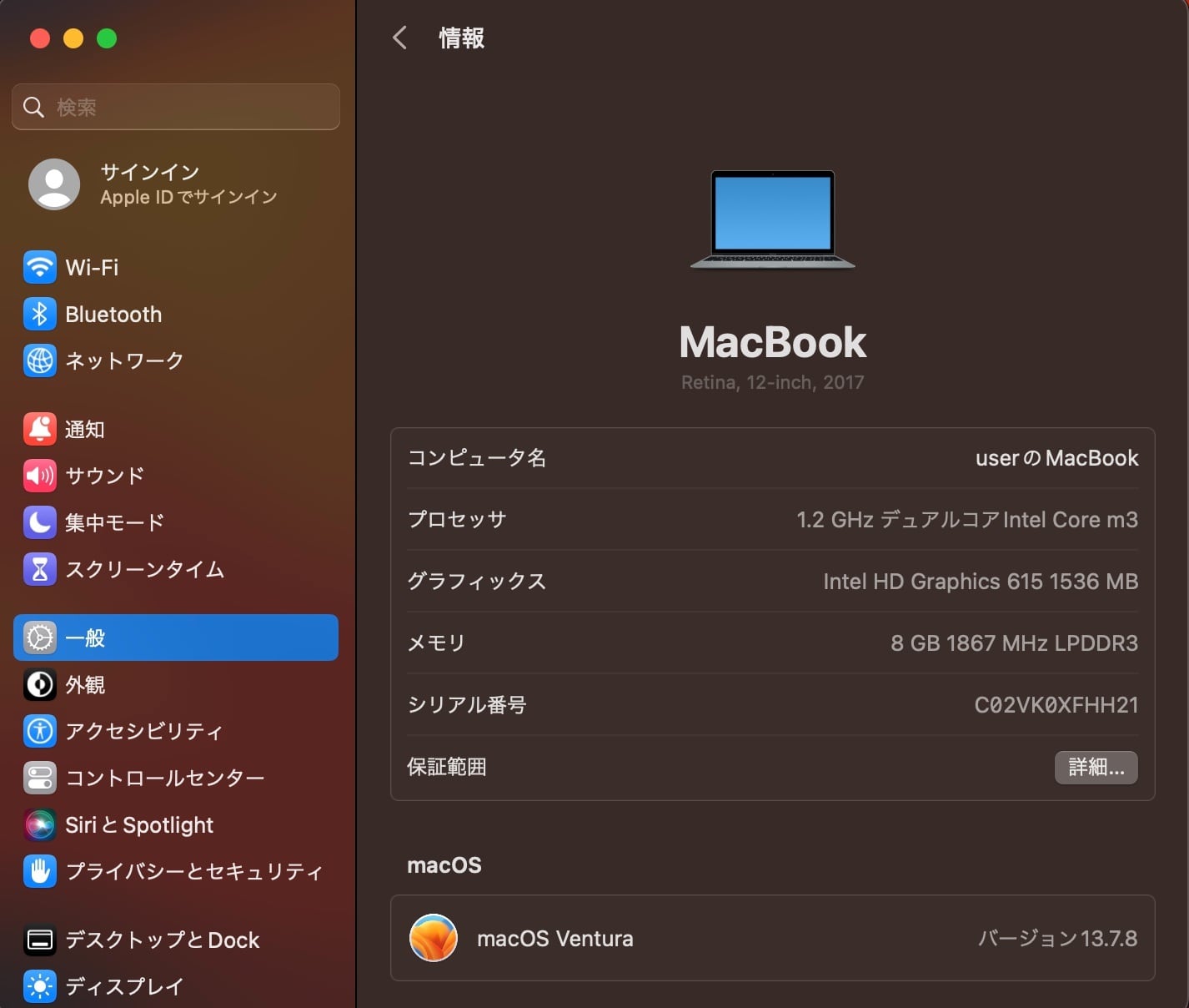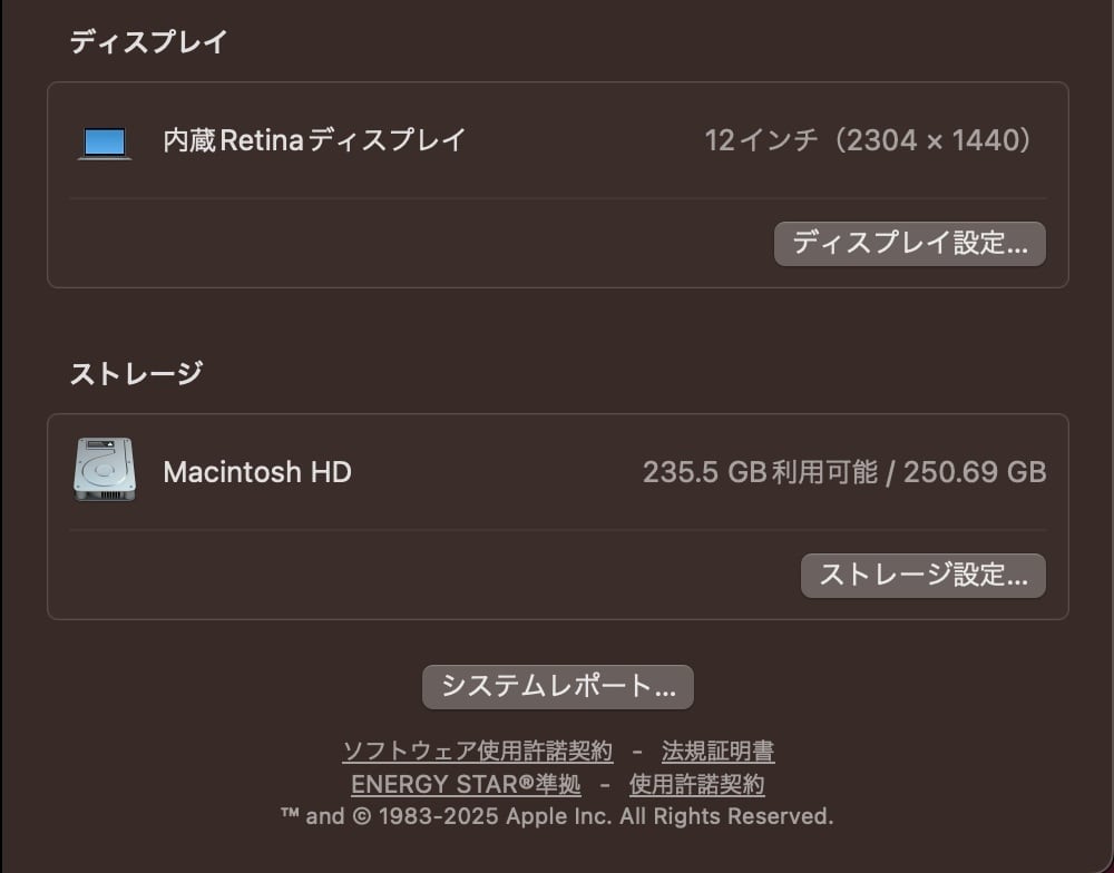 ・ディスプレイ:Retina 12インチ(2,304 x 1,440)