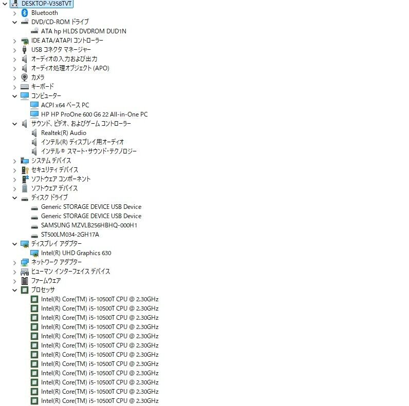 ・CPU:Intel Core i5-10500T 2.30GHz(2.30GHz)