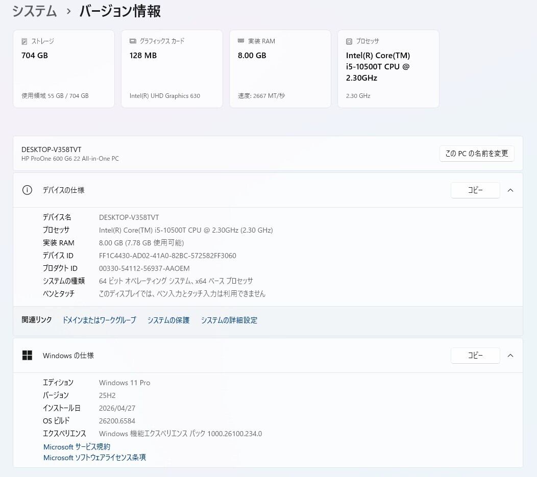 ・OS:Windows11 Pro/25H2(ライセンス認証・Windows update済)