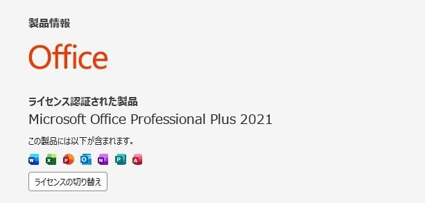 ・Office Professional Plus 2021 ライセンス認証済み(プロダクトキーなどは付属しません)