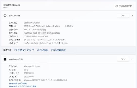 ・OS:Windows11 Home/25H2(ライセンス認証・Windows update済)