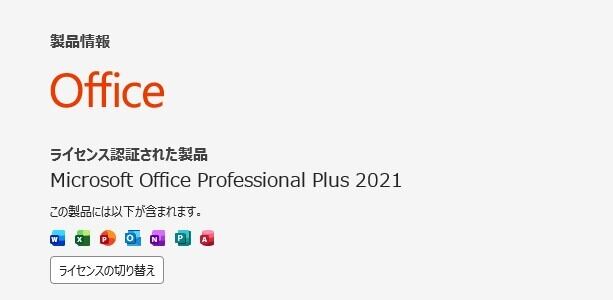 ・Office Professional Plus 2021 ライセンス認証済み(プロダクトキーなどは付属しません)