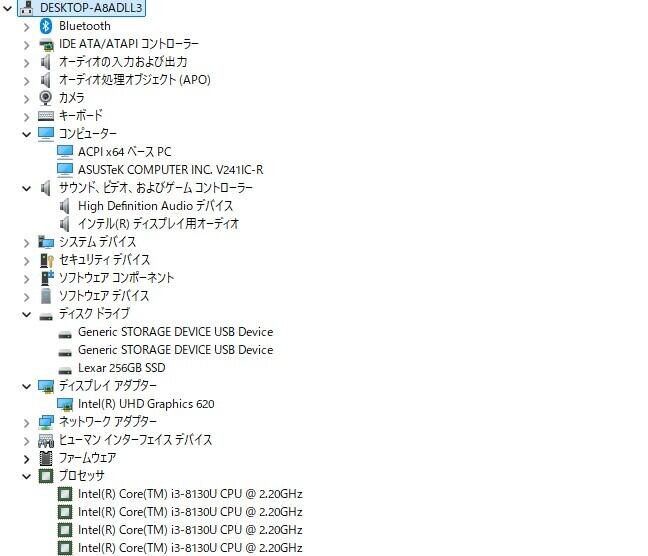 ・CPU:Intel Core i3-8130U 2.20GHz(2.21GHz)