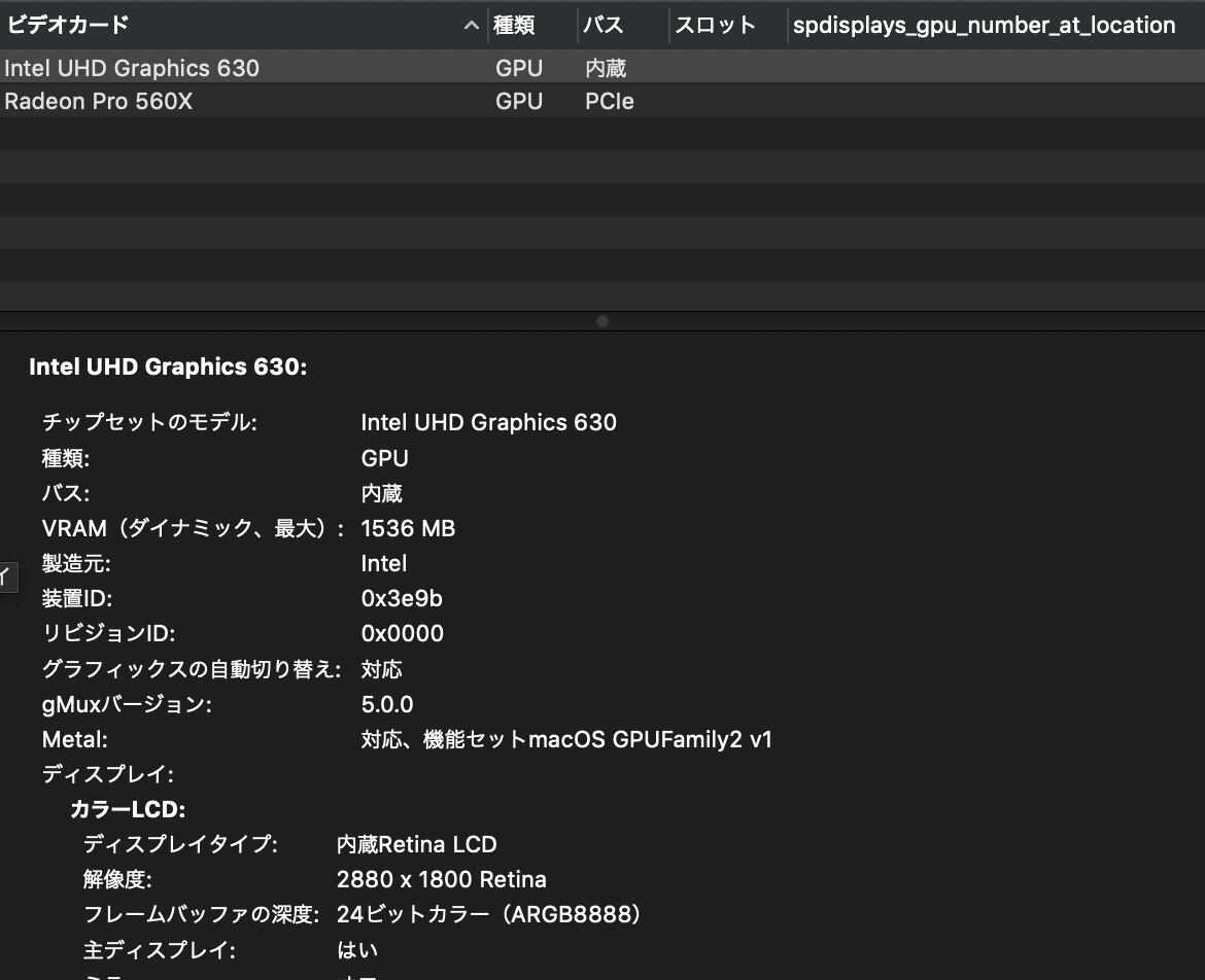 ・ディスプレイ:15.4インチ(2,880 x 1,800)