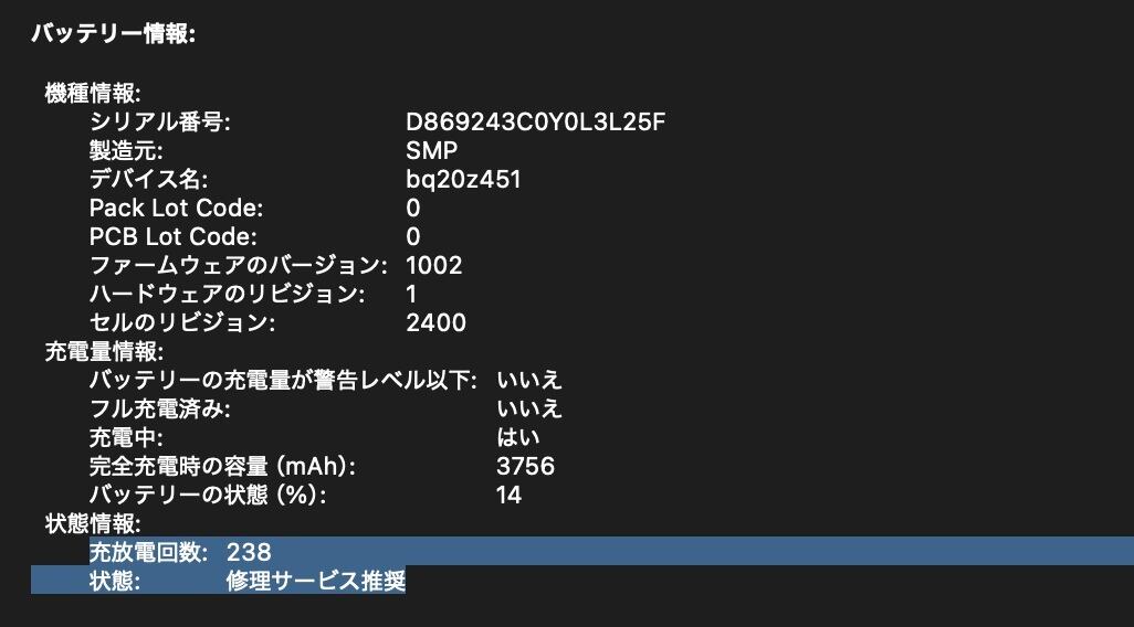 ・充放電回数:238回