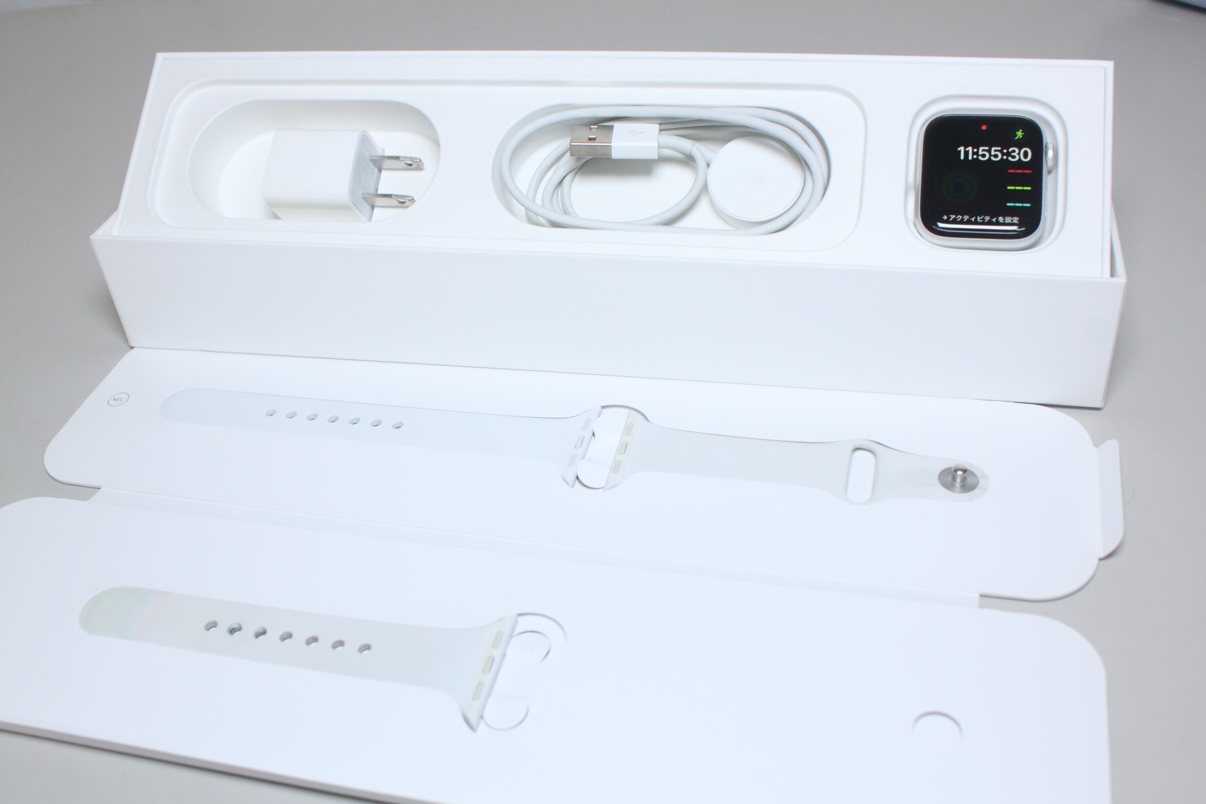 本体、バンドS/M,M/Lサイズ、充電ケーブル、アダプタ、元箱(画像1枚目に写っているものすべて)