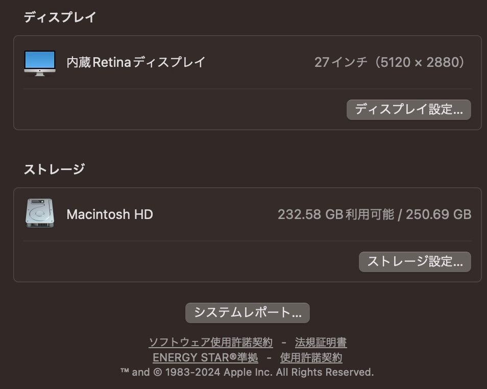 ・ディスプレイ:27インチディスプレイ(5,120 x 2,880)