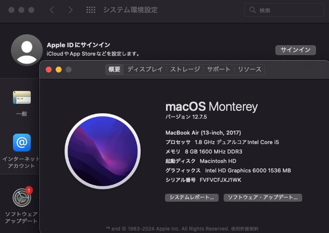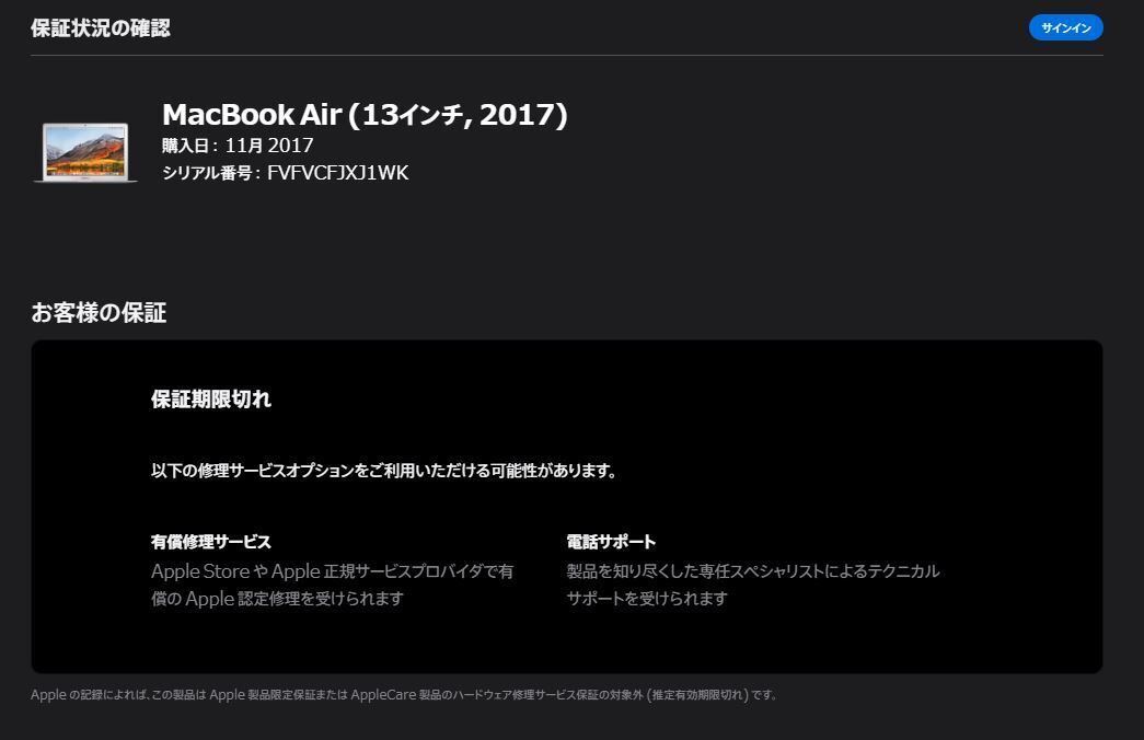 MacBook Air(13インチ,2017)128GB/8GB〈MQD32J/A〉④