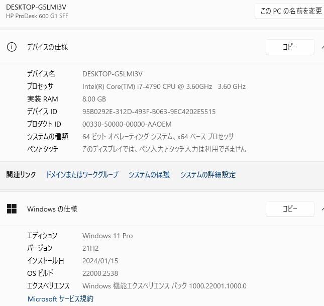 中古良品 HP ProDesk 600 G1 SFF デスクトップPC/Win11+office/core i7-4790/爆速SSD