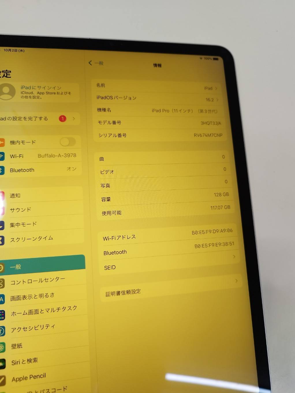 【Wi-Fiモデル】iPad Pro 11インチ/第3世代/128GB/A2377〈3HQT3J/A〉