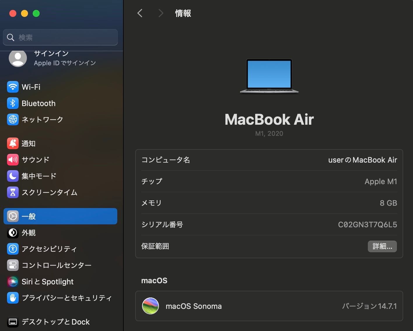 【現状品】MacBook Air(M1,2020)512GB/8GB〈FGN73J/A〉④
